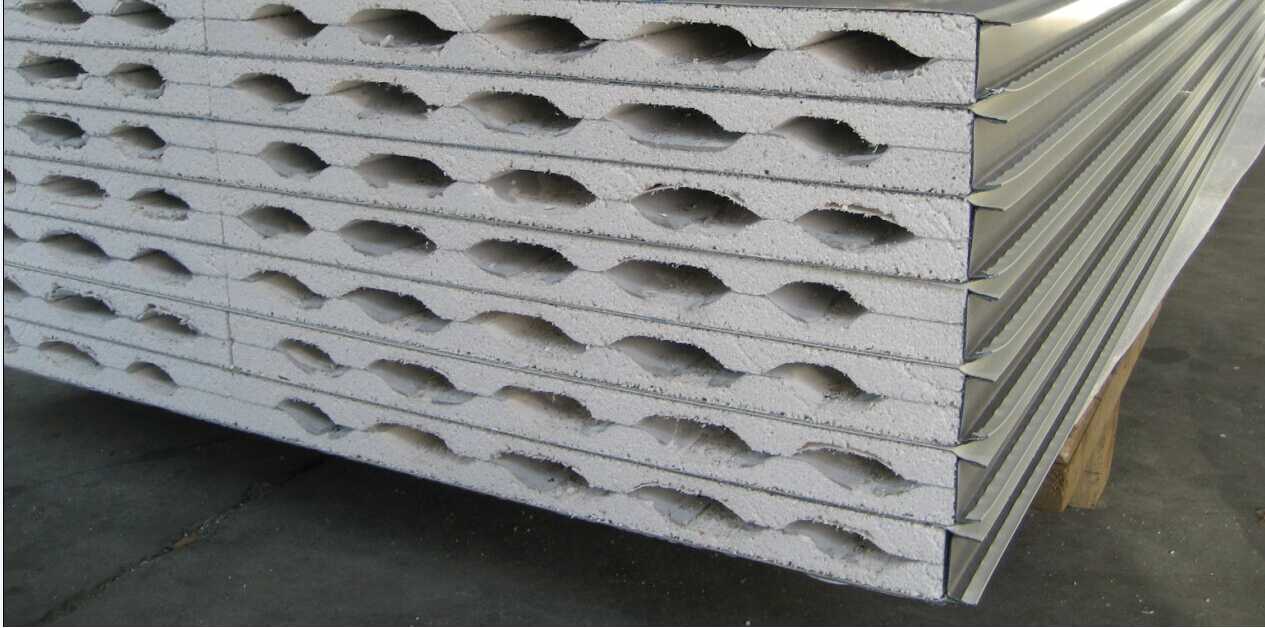 硫氧鎂夾芯板充分發(fā)揮了硫氧鎂復合材料的獨特性能,在防火,防潮,防脫膠,高強度,保溫,隔熱,吸音等方面有著顯著地優(yōu)點及功效。 生產工...
